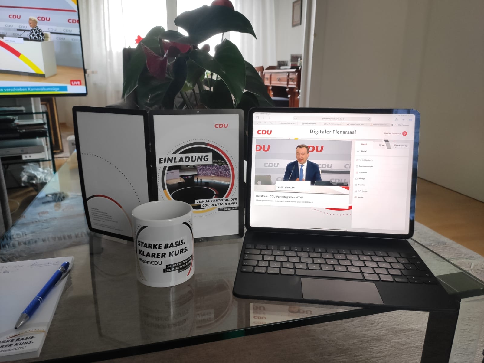 Die vier Delegierten des Kreises Olpe nahmen digital am Bundesparteitag der CDU Deutschlands teil. Leider waren dadurch persönliche Begegnungen und ein Austausch mit anderen Parteifreundinnen und Parteifreunden nicht möglich. Trotzdem war es für Dr. Barbara Schäfer, Jochen Ritter, Florian Müller und Marion Schwarte ein ganz besonderes Erlebnis.